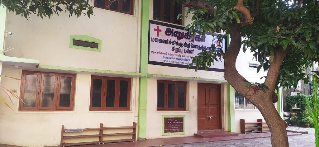 Anugraha, a non-residential school for special children, was started in 1994 at Perambur in Chennai. It comes under SD Santhome Region, Tamil Nadu. A member of the ‘Sisters of the Destitute Health and Education Service Society’, it is registered under the Tamil Nadu Society Registration Act 1975. It aims at enabling the intellectually challenged children to be self-sufficient, self-confident and worthy members of the family and noble citizens of the larger society. Up to the current year 470 students have been trained at Anugraha. It realizes this goal by imparting basic education to the special children by training them to speak, read and write, and to develop the fine motor skills, giving them different therapies as needed, giving training in table etiquette and daily living skills, social interactions, gardening, stitching, music, dance, drawing, yoga etc. according to the capacity of each individual.